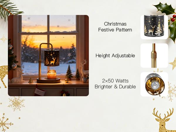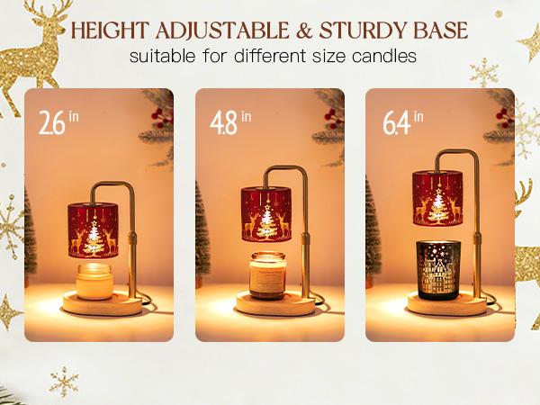 Christmas Candle Warmer Lamp with Timer: Candle Warming Lamp with 2 Bulbs Height Adjustable Wax Melt Warmer Dimmable Bedroom Decor Christmas Gift for Women