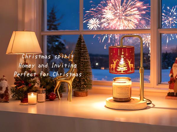 - FESTIVE HOLIDAY DECOR: The Candeldo candle warmer lamp features a radiant red glass shade adorned with golden reindeer and Christmas tree motifs, casting a warm, cheerful glow that instantly evokes the spirit of the season. Paired with a gold-finished candle lamp pole and natural oval wood base, this candle warmer blends elegance with holiday charm. Perfect for creating a cozy, Christmas ambiance, it makes a delightful addition to living rooms, bedrooms, or office during Christmas and beyond.